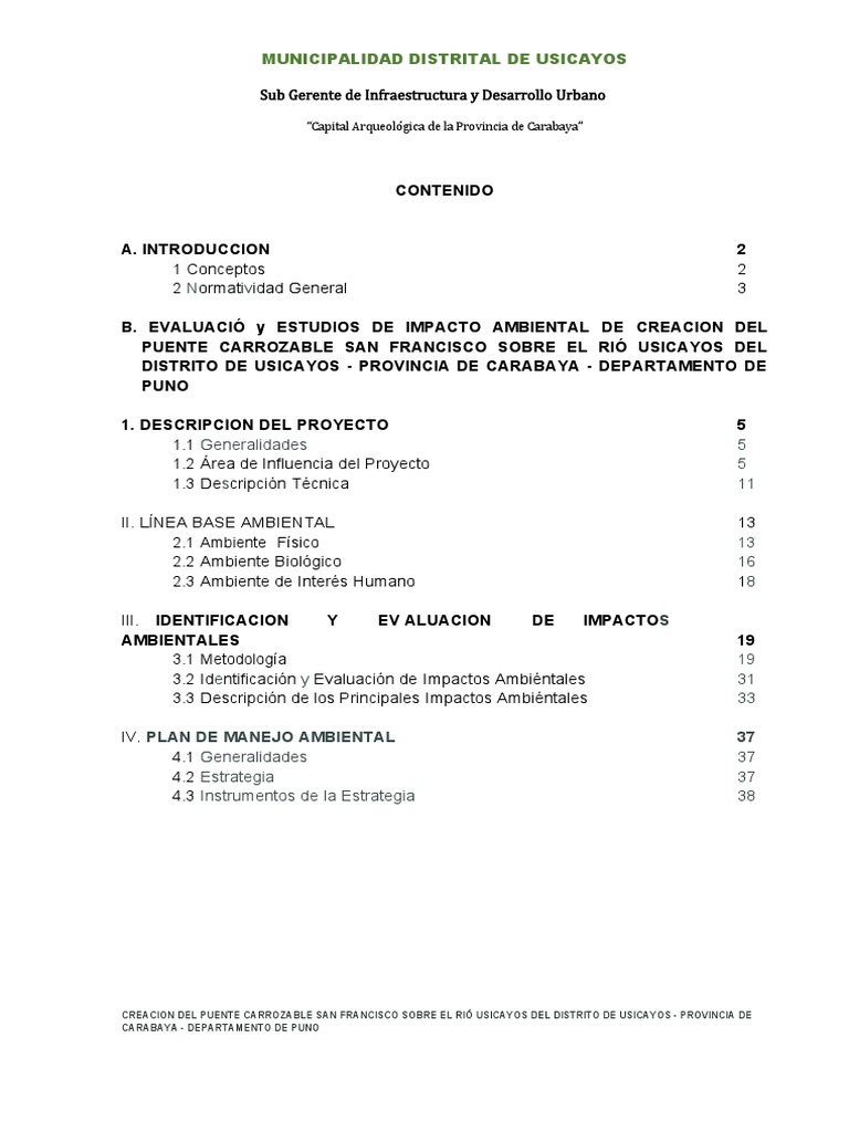 CREACION DEL PUENTE CARROZABLE SAN FRANCISCO SOBRE EL RIÓ USICAYOS DEL DISTRITO DE USICAYOS - PROVINCI A DE