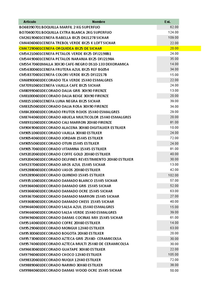 Articulo Nombre Exi.