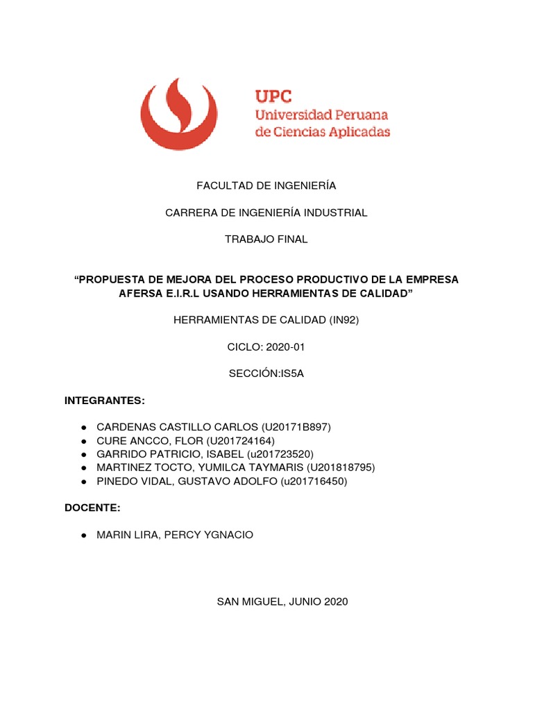 AFERSA E.I.R.L USANDO HERRAMIENTAS DE CALIDAD”