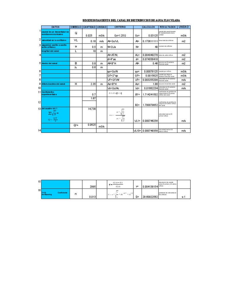 DIMENSIONAMIENTO DEL CANAL DE DESTRIBUCION DE AGUA FLOCULADA