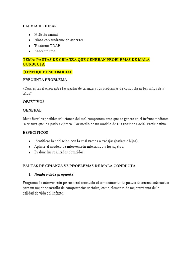 PAUTAS DE CRIANZA VS PROBLEMAS DE MALA CONDUCTA