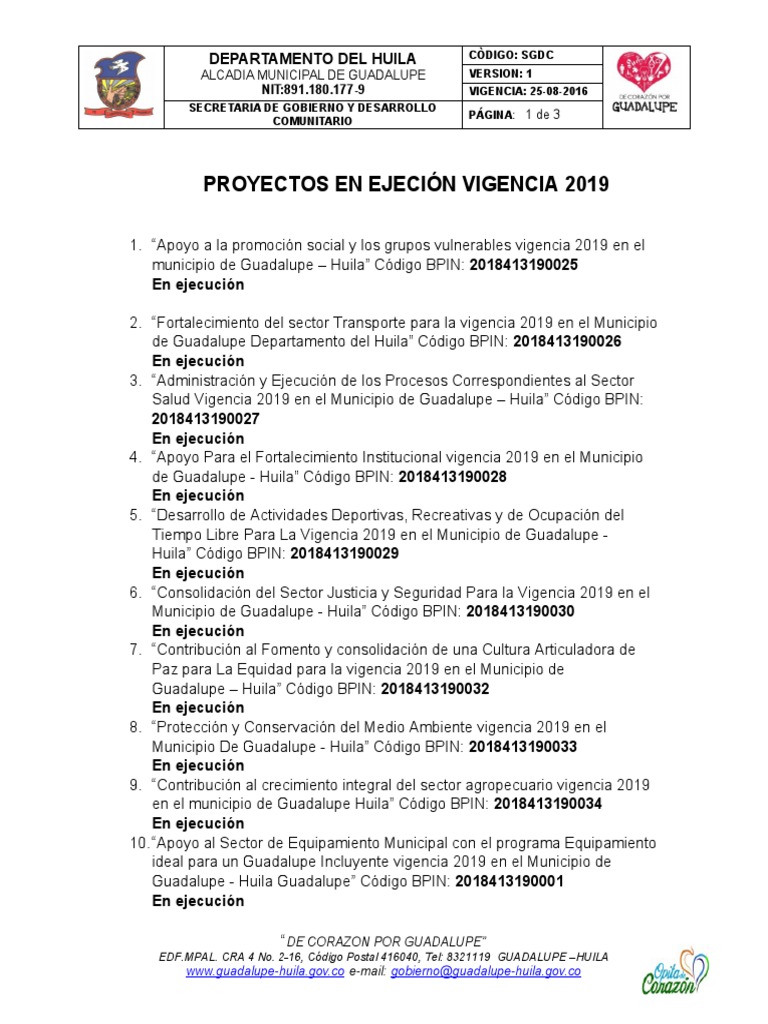 municipio de Guadalupe - Huila” Código BPIN: 2018413190007