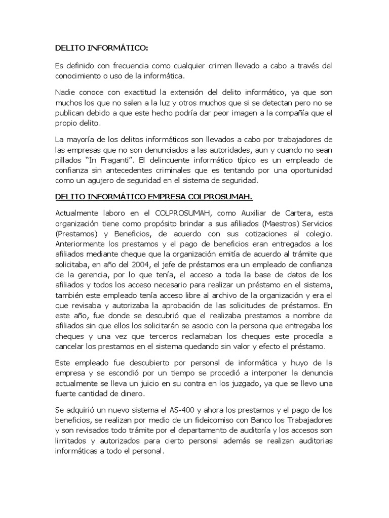 DELITO INFORMÁTICO EMPRESA COLPROSUMAH.