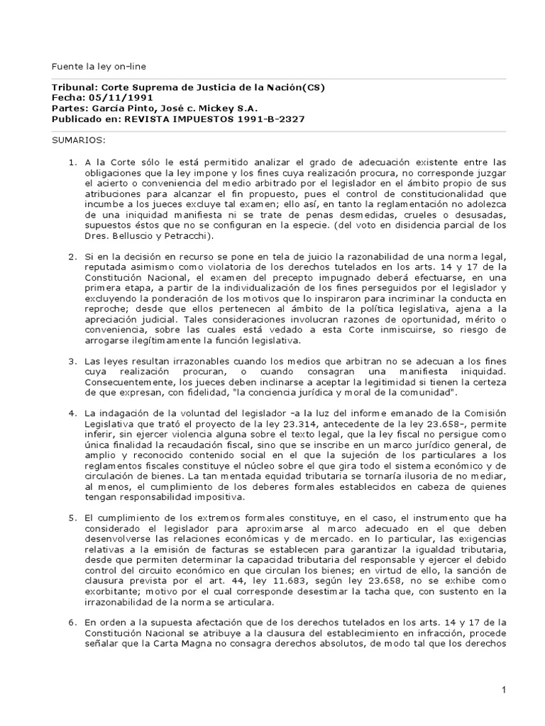Partes: García Pinto, José c. Mickey S.A.