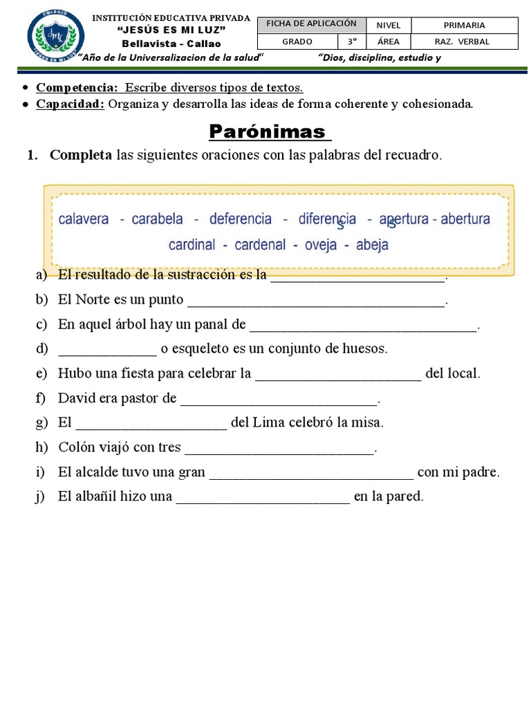 1. Completa las siguientes oraciones con las palabras del recuadro.