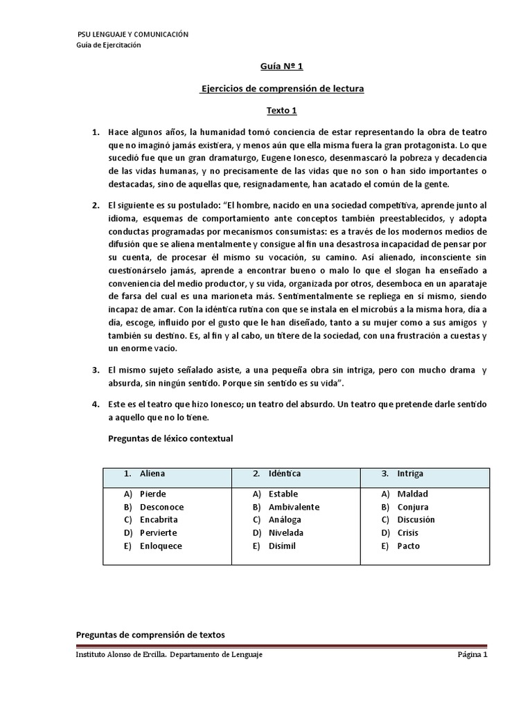 Ejercicios de comprensión de lectura
