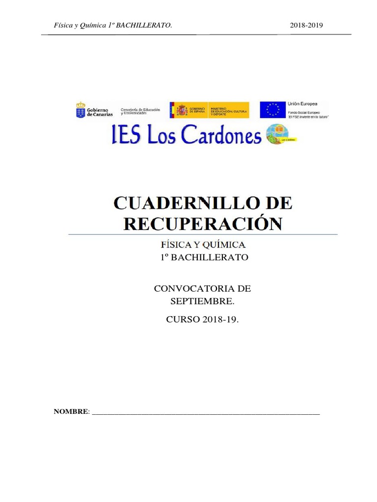 Física y Química 1º BACHILLERATO. 2018-2019