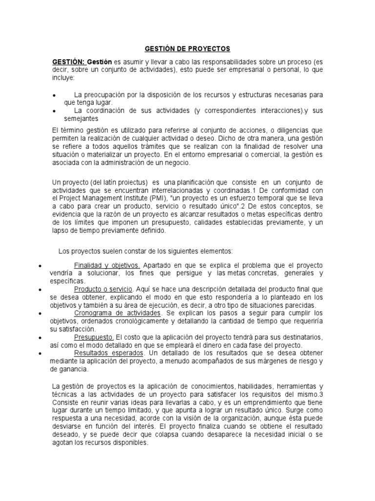 a cabo para crear un producto, servicio o resultado único".2 De estos conceptos, se