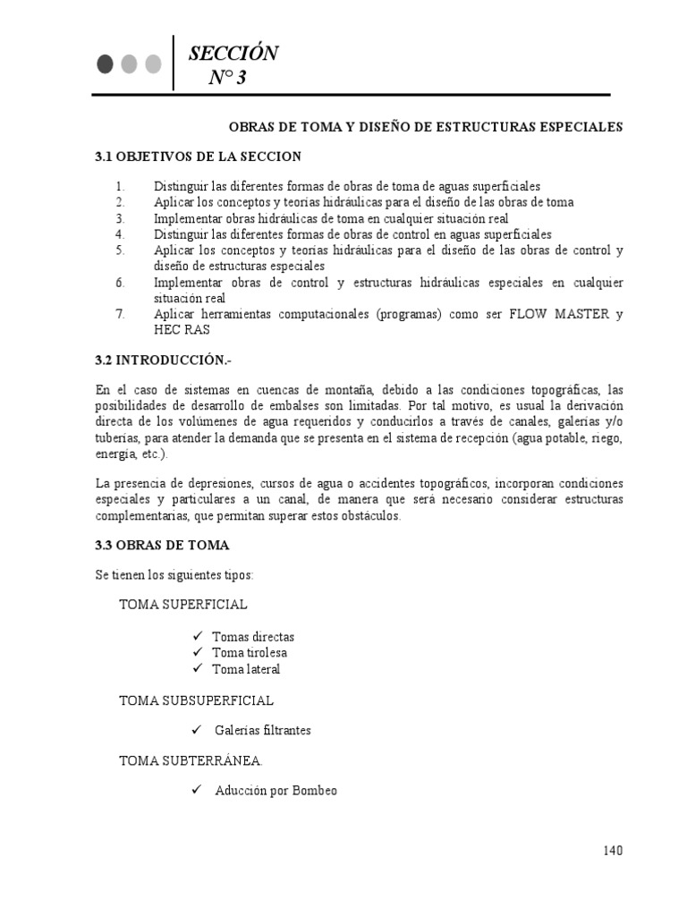 Obras de toma y diseño de estructuras especiales