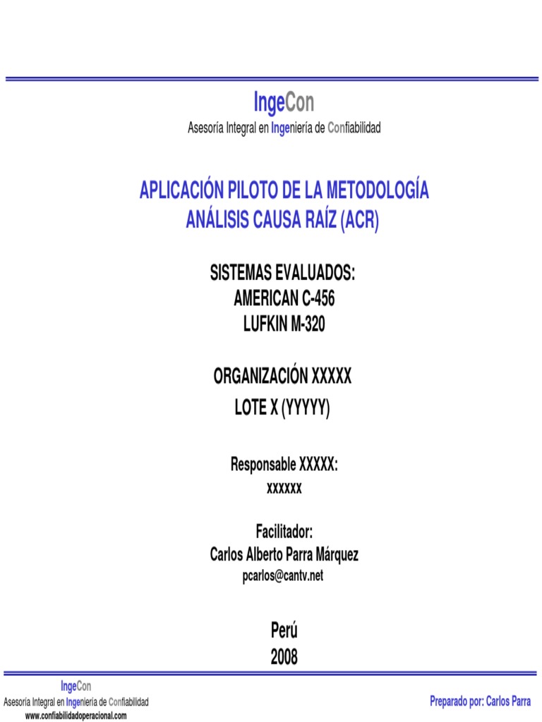 Asesoría Integral en Ingeniería de Confiabilidad Preparado por: Carlos Parra