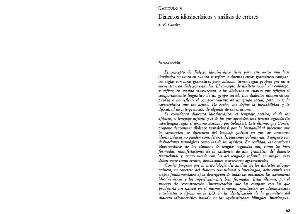 Dialectos idiosincrasicos y analisis de errores s. P. Corder
