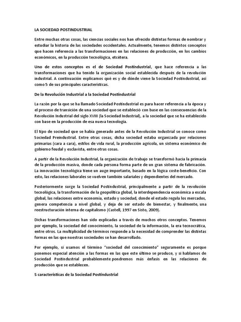 Postindustrial y que establecen diferencias importantes con la sociedades industriales: el
