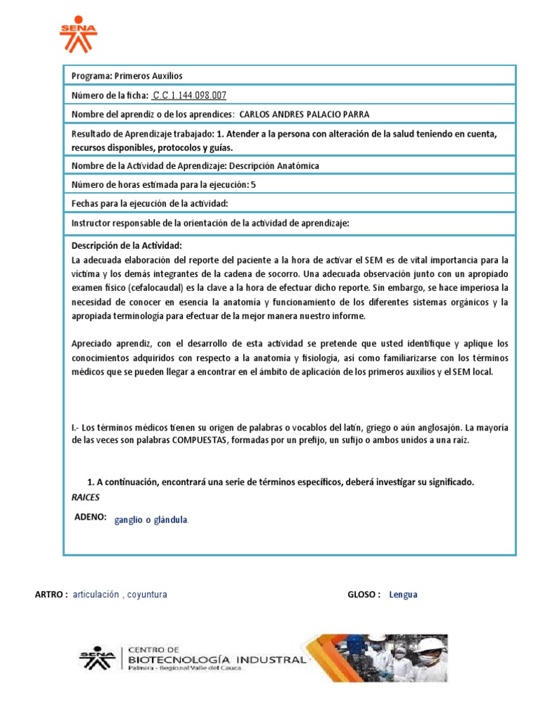 Nombre de la Actividad de Aprendizaje: Descripción Anatómica