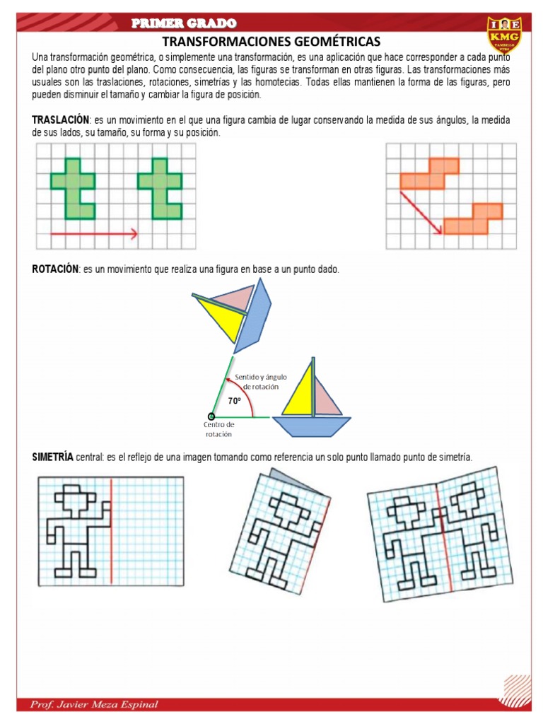 del plano otro punto del plano. Como consecuencia, las figuras se transforman en otras figuras. Las transformaciones más
