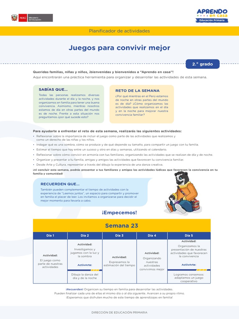 ¡Recuerden! Organicen su tiempo en familia para desarrollar las actividades.