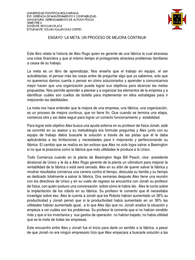 ENSAYO “LA META, UN PROCESO DE MEJORA CONTINUA”