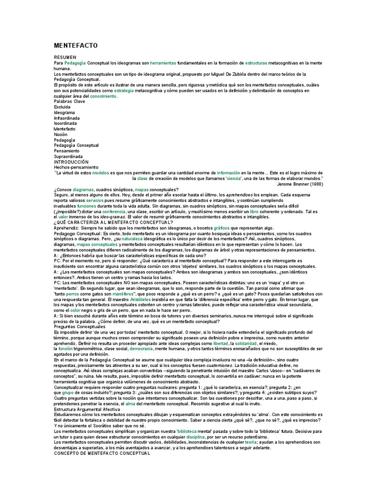 Los mentefactos conceptuales son un tipo de ideograma original, propuesto por Miguel De Zubiría dentro del marco teórico de la