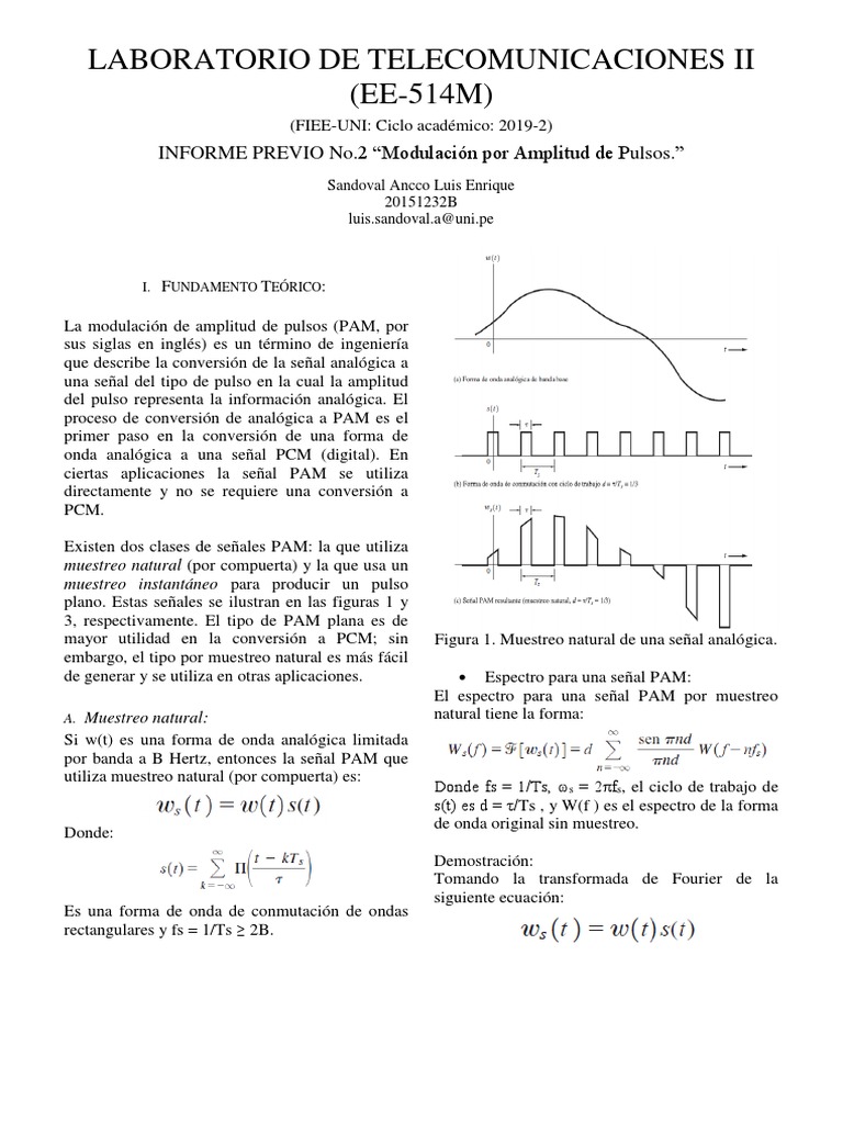 INFORME PREVIO No.2 “Modulación por Amplitud de Pulsos.”