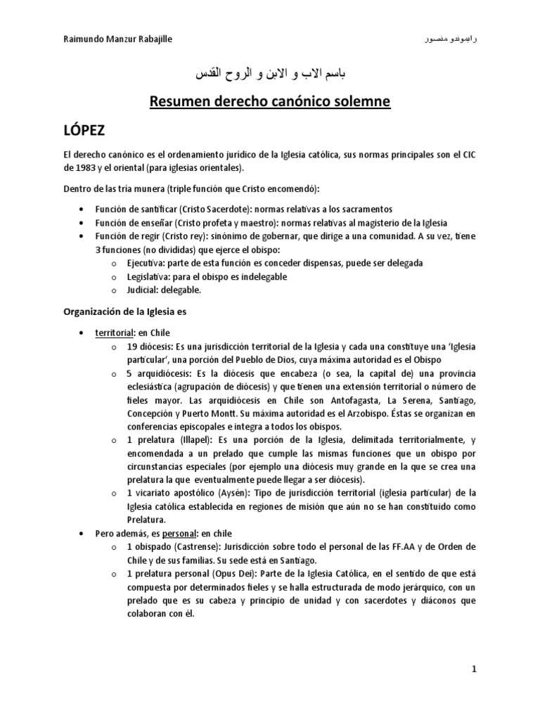 Resumen Derecho Canónico Solemne