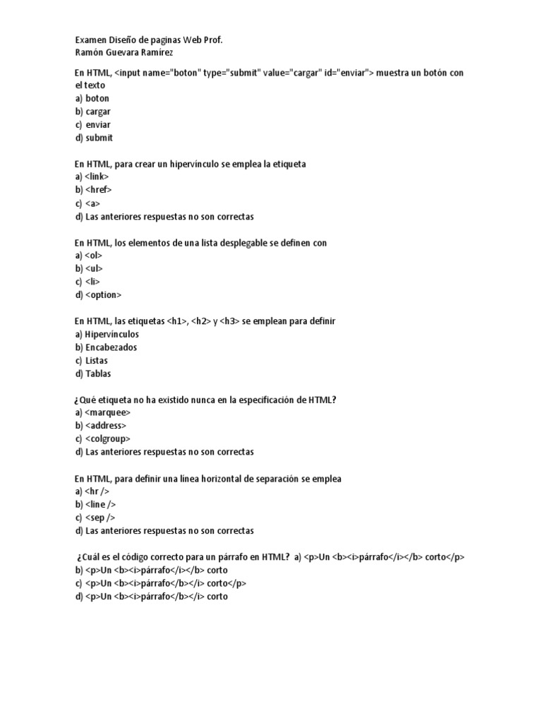 Examen Diseño de paginas Web Prof.
