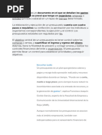4. Elabore una definición de presupuesto, partiendo de las definiciones planteadas por los