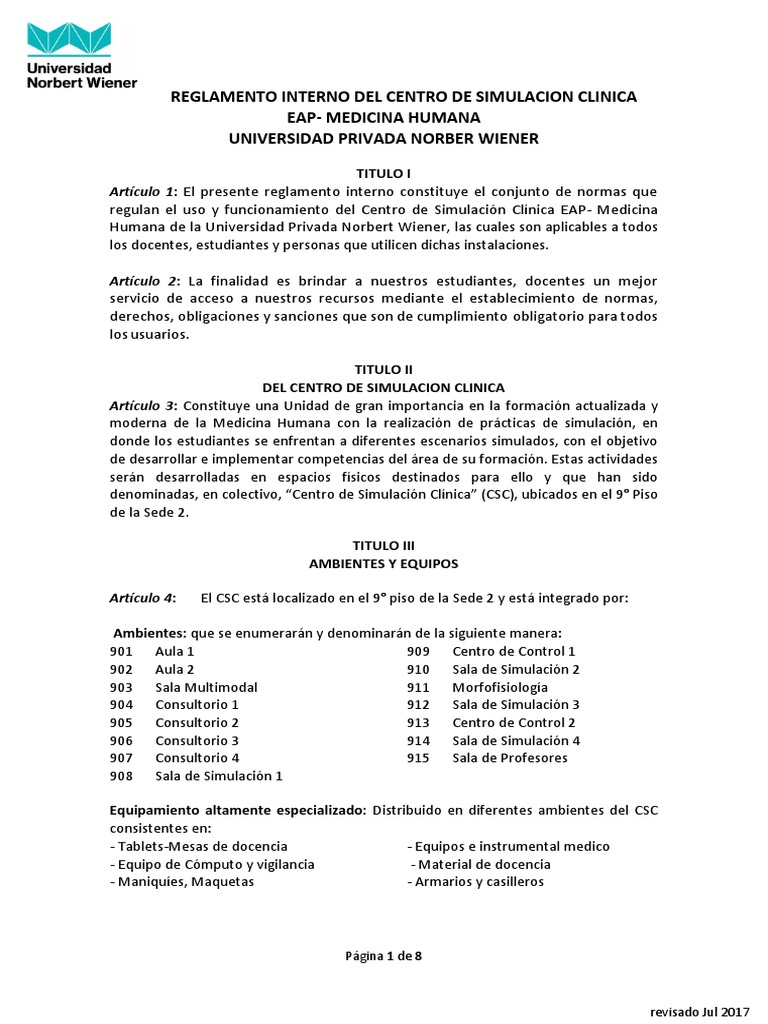 REGLAMENTO INTERNO DEL CENTRO DE SIMULACION CLINICA