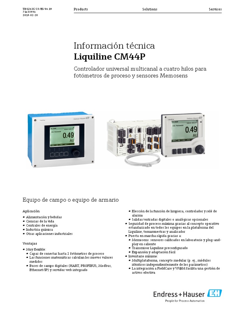 fotómetro con sensores portasondas para condiciones específicas para su aplicación (www.es.endress.com/products).