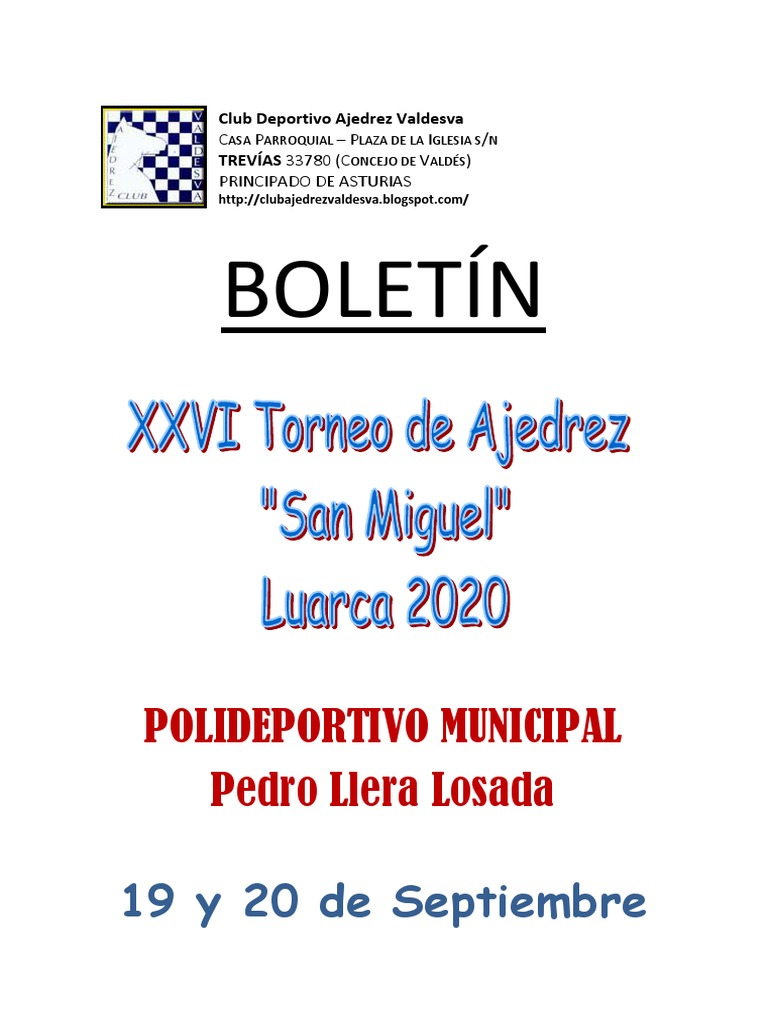 BOLETÍN · XXVI Torneo de Ajedrez San Miguel 2020