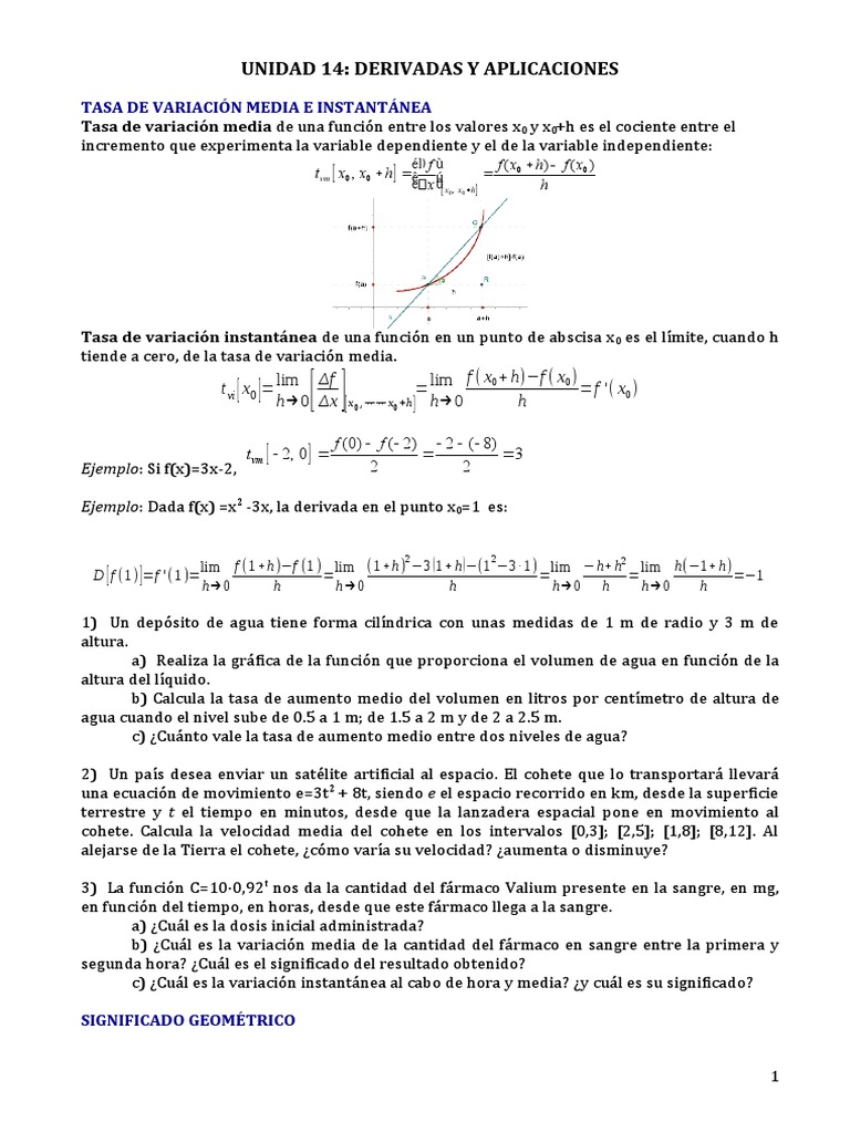 UNIDAD 14: DERIVADAS Y APLICACIONES