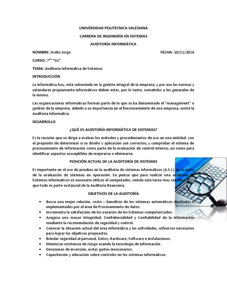 Miranda, S, (abril de 2015), Auditoria Informática de sistemas, Recuperado de: