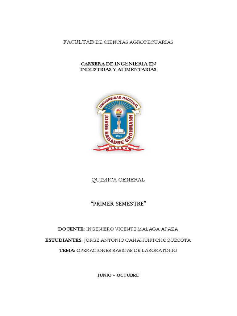 TEMA: OPERACIONES BASICAS DE LABORATORIO