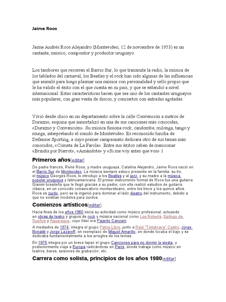 De padre francés, René Roos, y madre uruguaya, Catalina Alejandro, Jaime Roos nació en