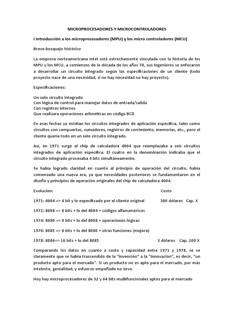 I Introducción a los microprocesadores (MPU) y los micro controladores (MCU)