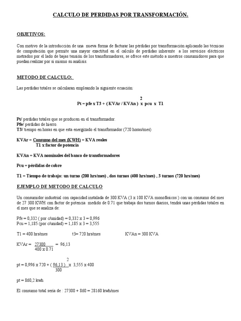 CALCULO DE PERDIDAS POR TRANSFORMACIÓN.