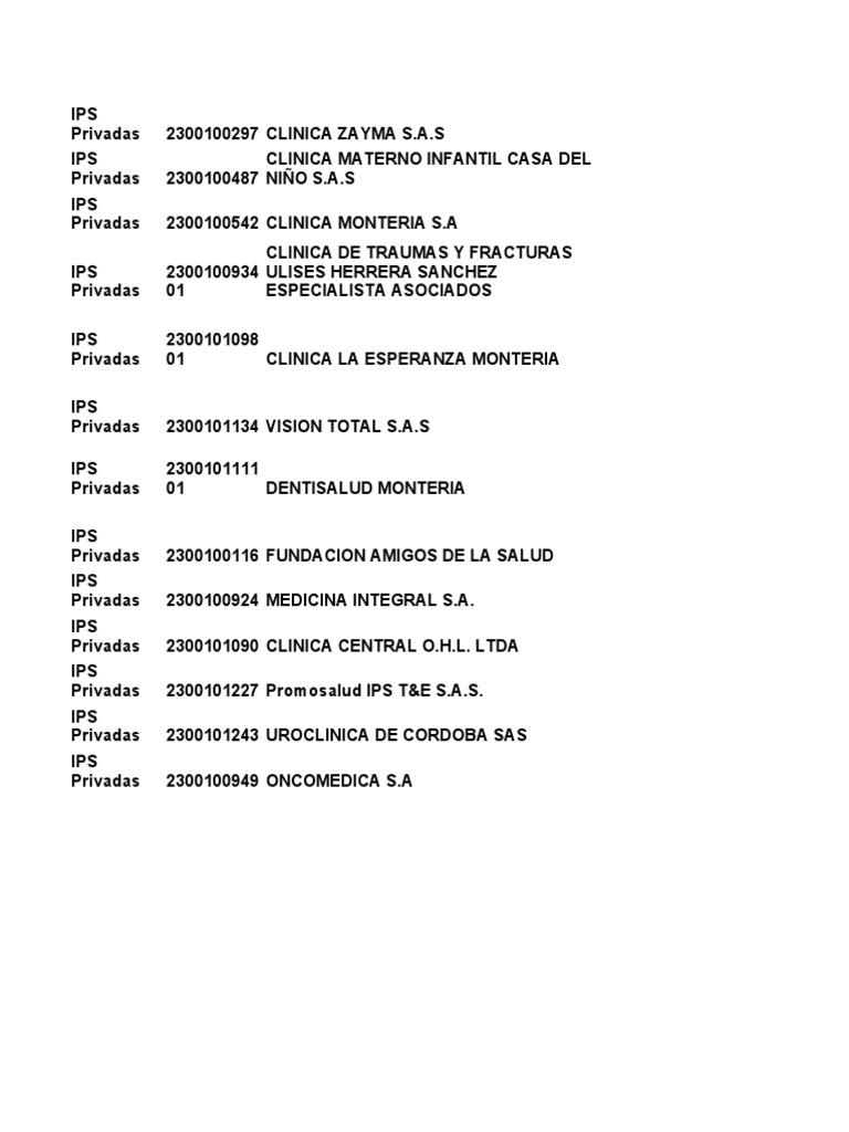 Privadas 2300100542 CLINICA MONTERIA S.A