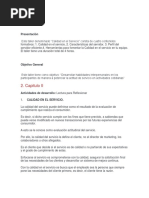 excelencia del servicio” (2001) sugiere lo siguiente: “Llegar a