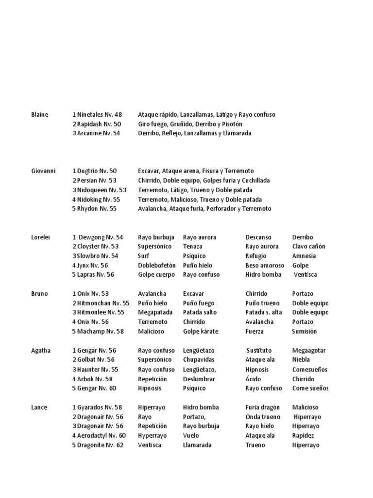 5 Lapras Nv. 56 Golpe cuerpo Rayo confuso Hidro bomba Ventisca