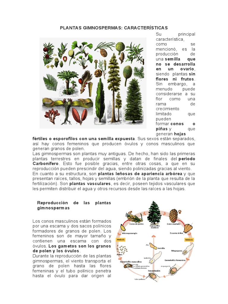 PLANTAS GIMNOSPERMAS: CARACTERÍSTICAS