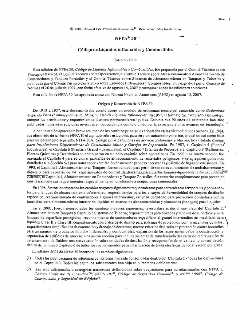 La edición 2008 de NFPA 30 presenta una revisión edítorial completa de la edición anterior (2003) para implementar el