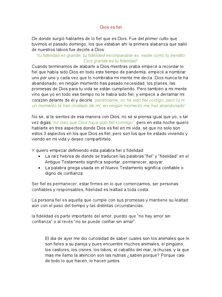 De donde surgió hablarles de lo fiel que es Dios. Fue del primer culto que