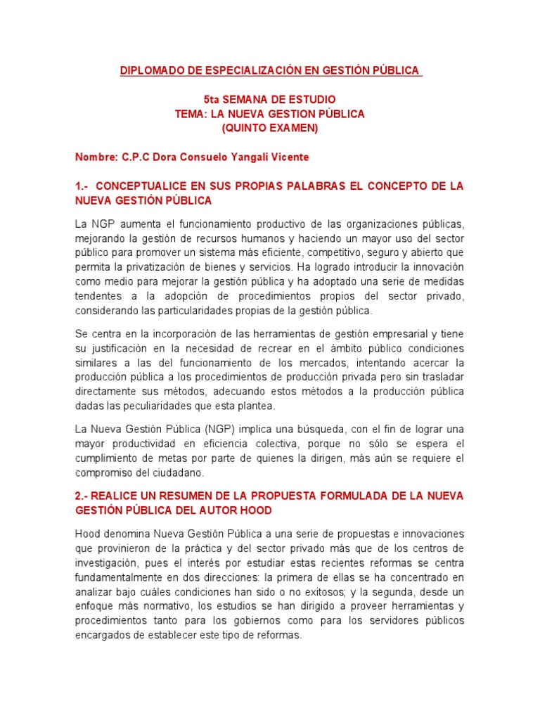 La Nueva Gestión Pública (NGP) implica una búsqueda, con el fin de lograr una