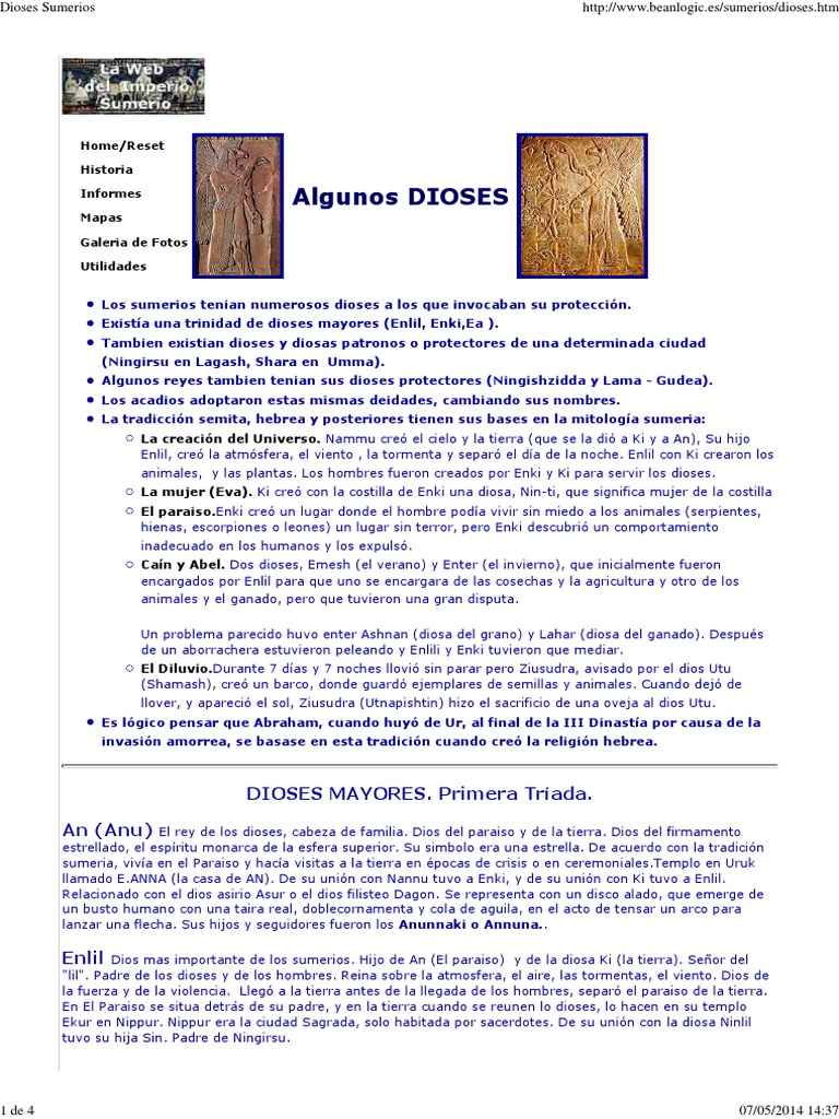 sumeria, vivía en el Paraiso y hacía visitas a la tierra en épocas de crisis o en [Link] en Uruk