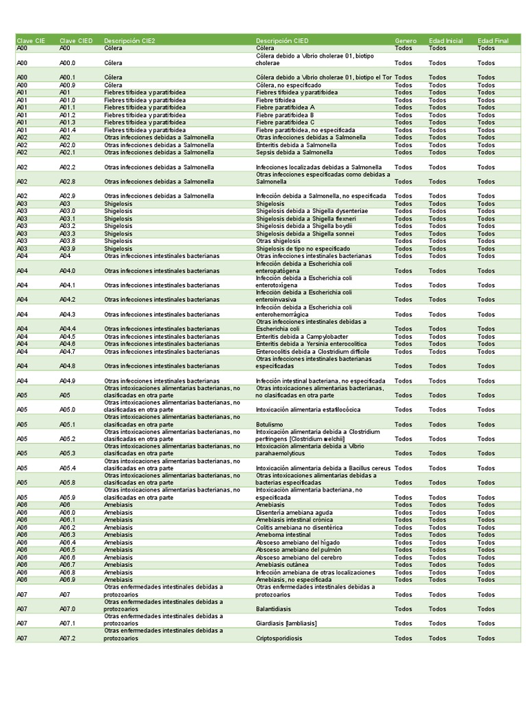 A03 A03.0 Shigelosis Shigelosis debida a Shigella dysenteriae Todos Todos Todos