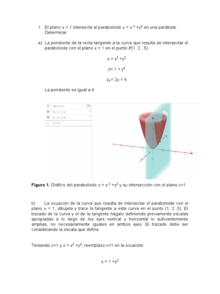 paraboloide con el plano 𝑥 = 1 en el punto 𝑃(1, 2 , 5)