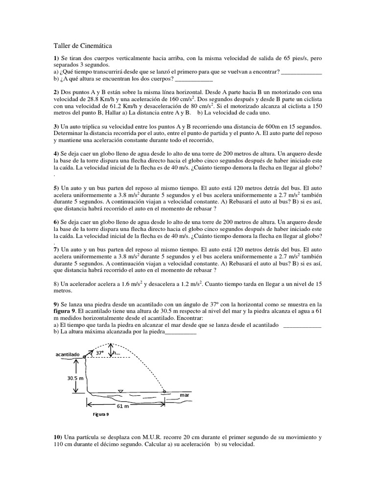1) Se tiran dos cuerpos verticalmente hacia arriba, con la misma velocidad de salida de 65 pies/s, pero