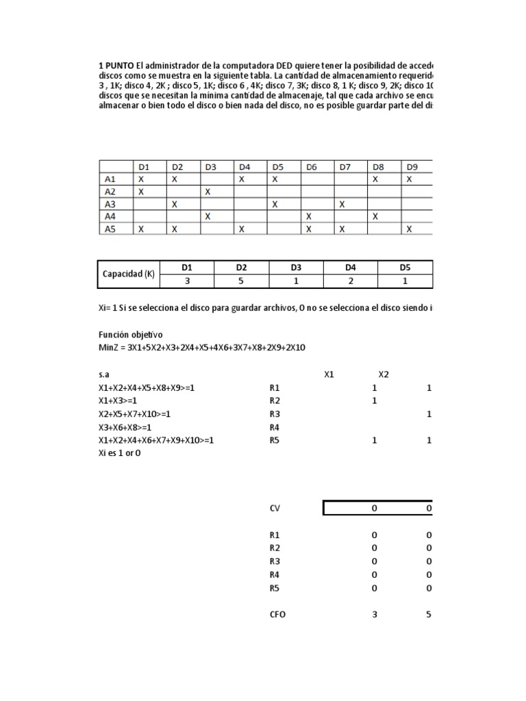 almacenar o bien todo el disco o bien nada del disco, no es posible guardar parte del disco. (Resolver en solver)