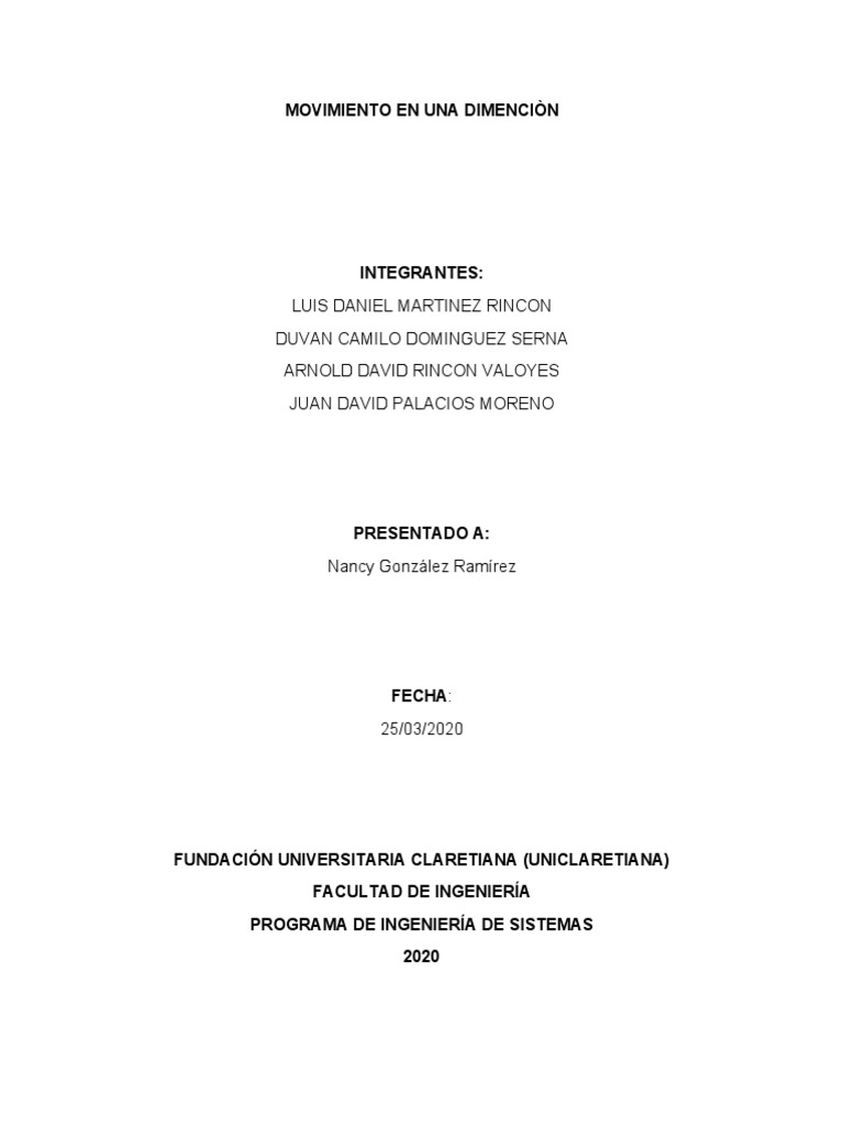 central que es movimiento en una dimensión.