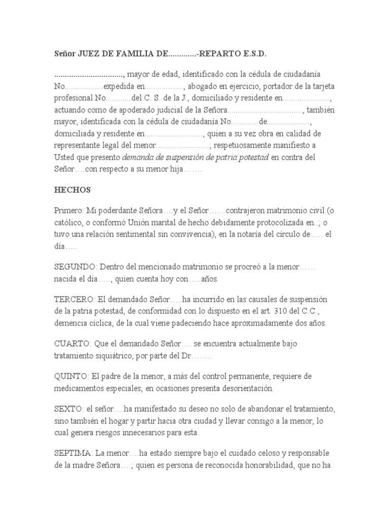 Usted que presento demanda de suspensión de patria potestad en contra del