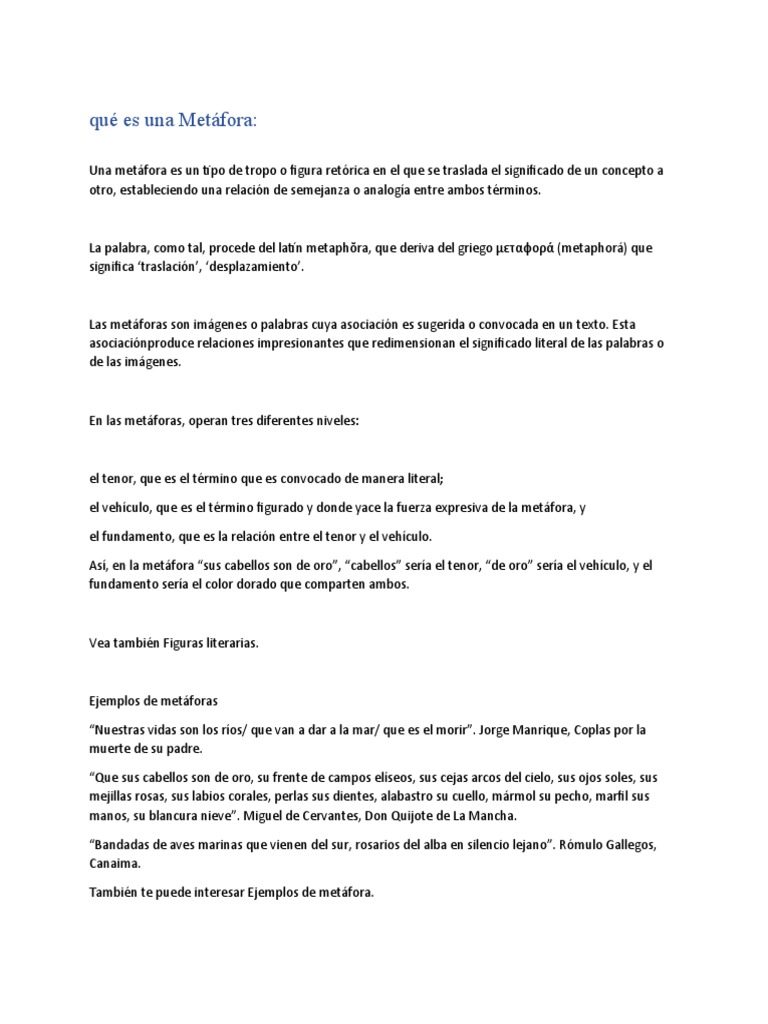 Las metáforas son imágenes o palabras cuya asociación es sugerida o convocada en un texto. Esta