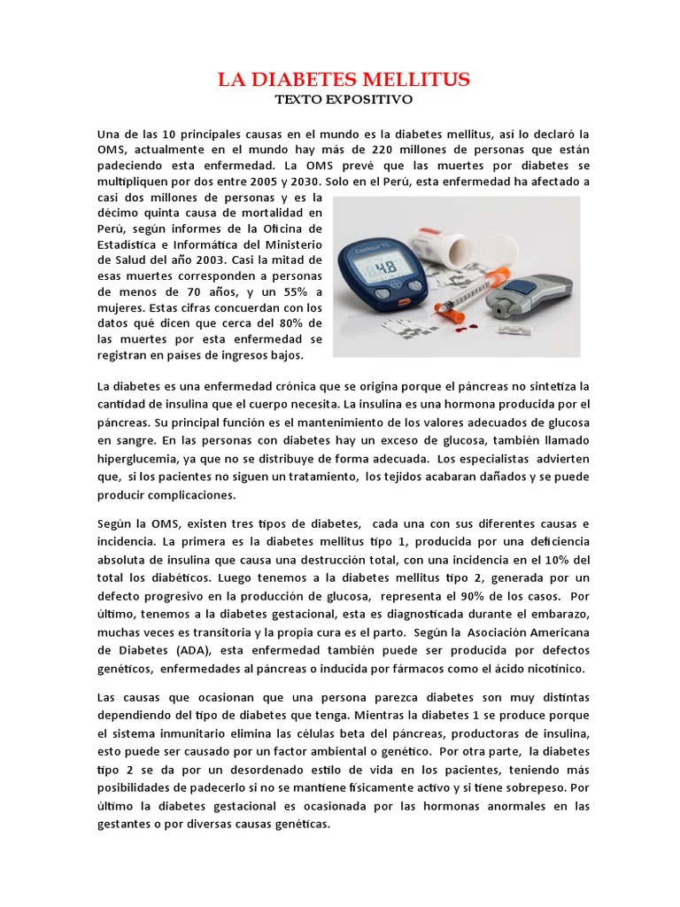 incidencia. La primera es la diabetes mellitus tipo 1, producida por una deficiencia